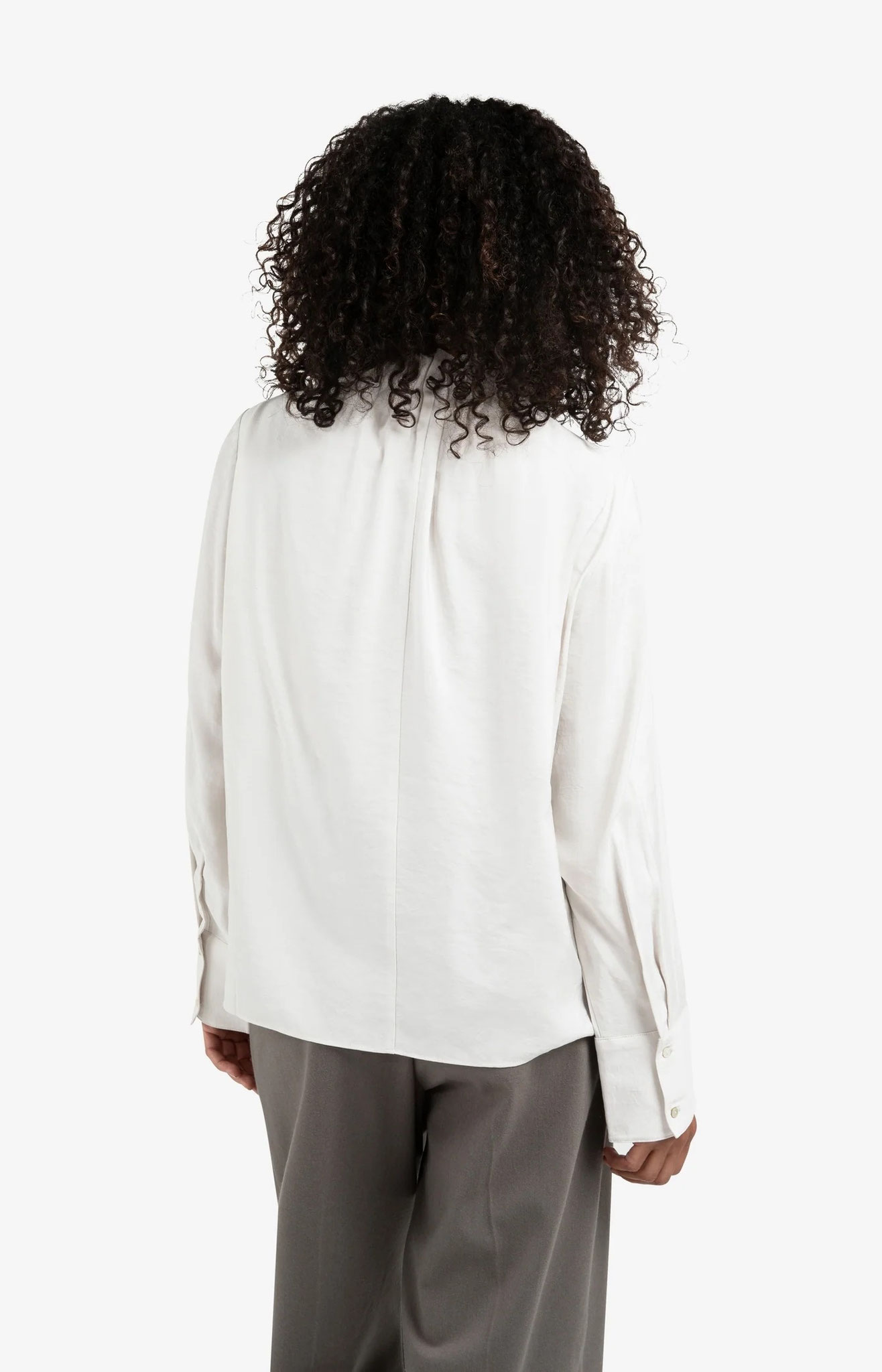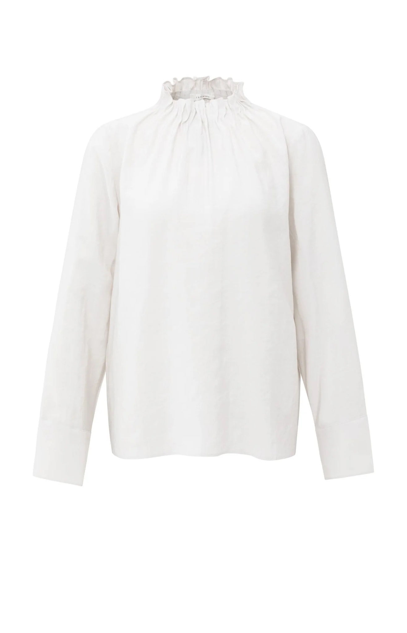 This elegant top is made from a soft cotton blend and features an elasticated turtleneck with a button closure at the back. The long sleeves and straight fit offer a comfortable look. The hem is adjustable with drawstrings on both sides, adding a playful touch. Perfect for a casual yet stylish outfit.