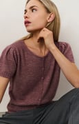 YAYA - Knitted Short Sleeve Cardigan With Rib Acce