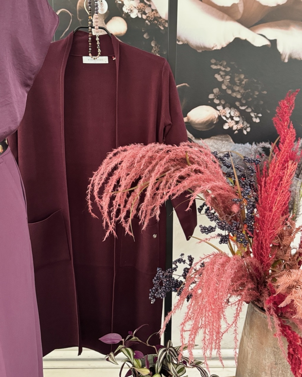 A long open cardigan which you can easily wear between seasons as a coat and later as a cardigan.