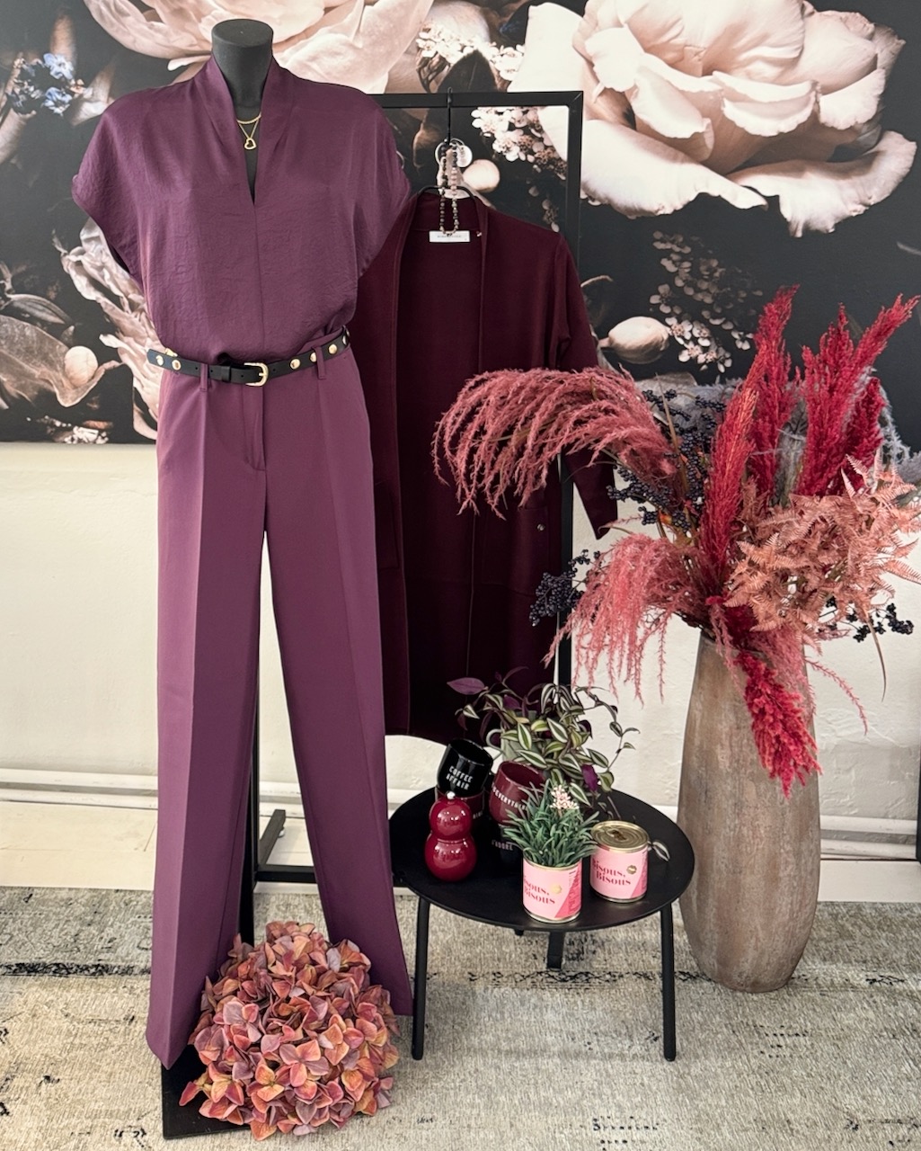 Summum’s bestseller foam trousers with wide legs. The trousers have an elasticated waistband and slit pockets at the front and strip pockets at the back.