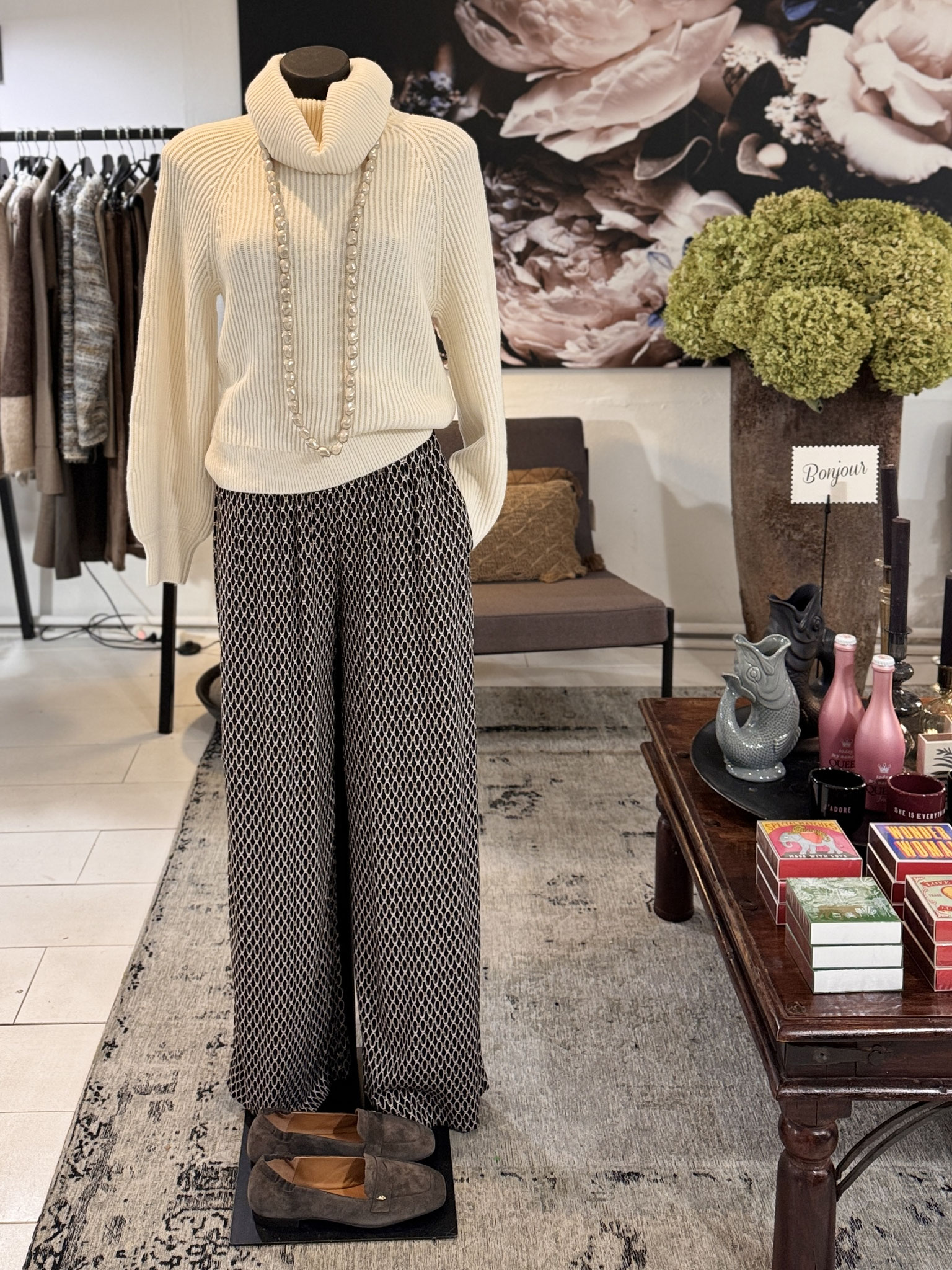 Dea Kudibal's Margodea Wide leg pants have a timeless appeal and this pair in Takao print with a wide elastic waistband are a great example. Wear with a simple top or a knit for an effortlessly chic outfit.