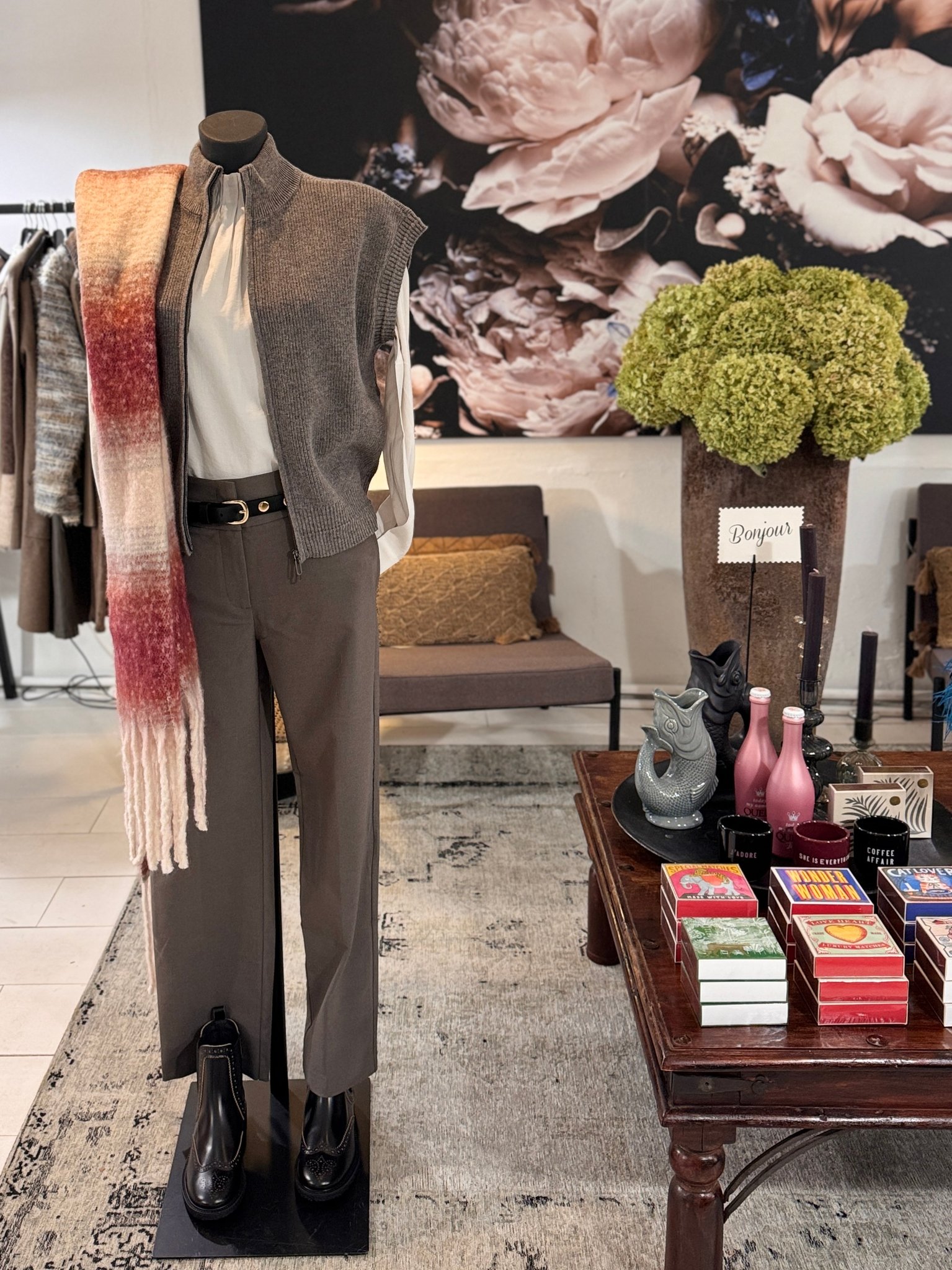These stylish trousers are crafted from a soft, structured fabric and feature a high waist with a double waistband for a modern touch. The straight legs provide a timeless fit, while the side pockets add extra comfort.