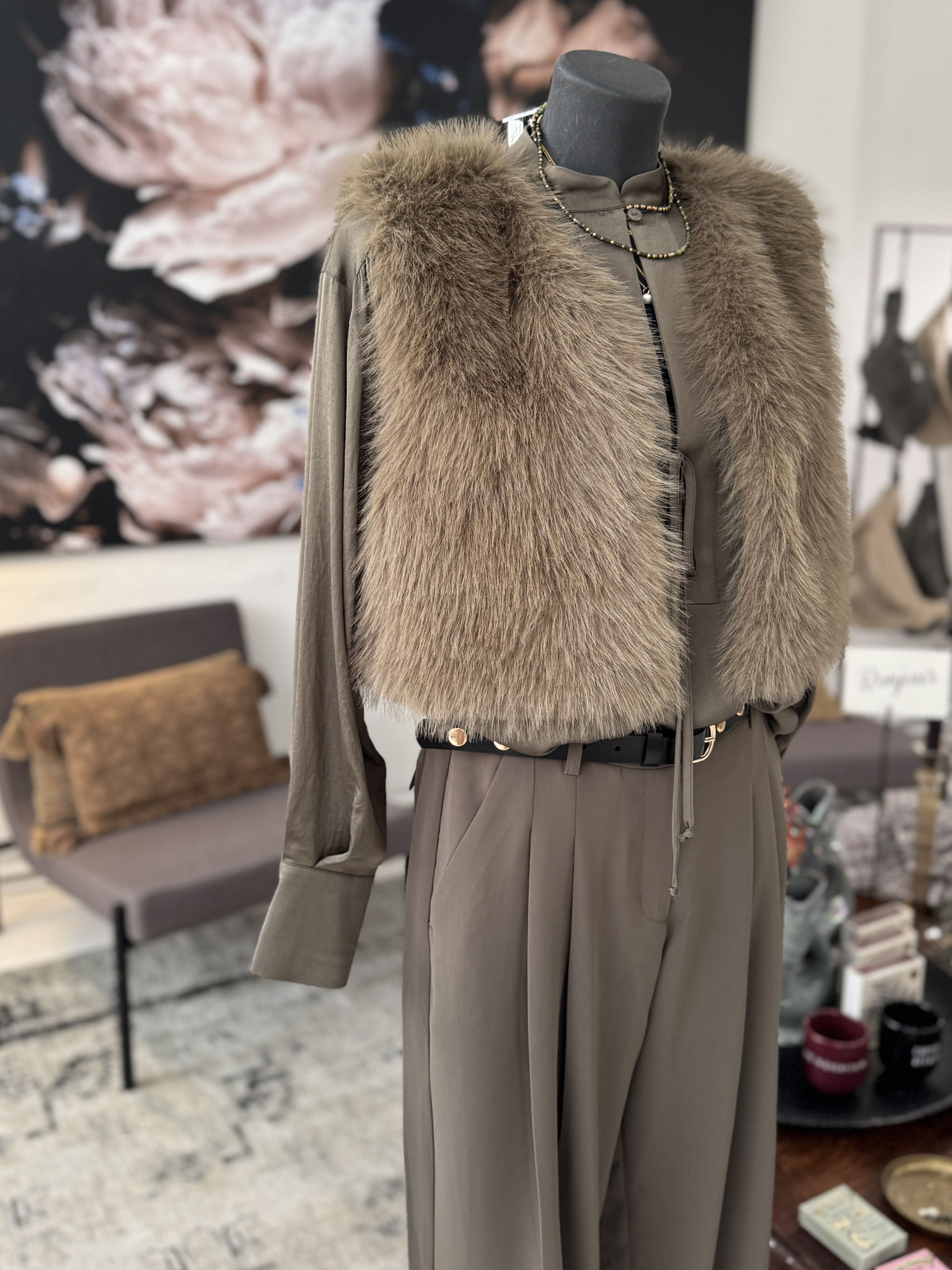A piece like this (let’s just call it a “fur vest” for convenience) truly deserves a place in every wardrobe. You can simply throw it on over almost anything. It’s that kind of vest that gives a slightly standard outfit just the right extra touch, transforming your look completely. And of course, it’s also perfect for adding a little warmth when the weather is unpredictable.