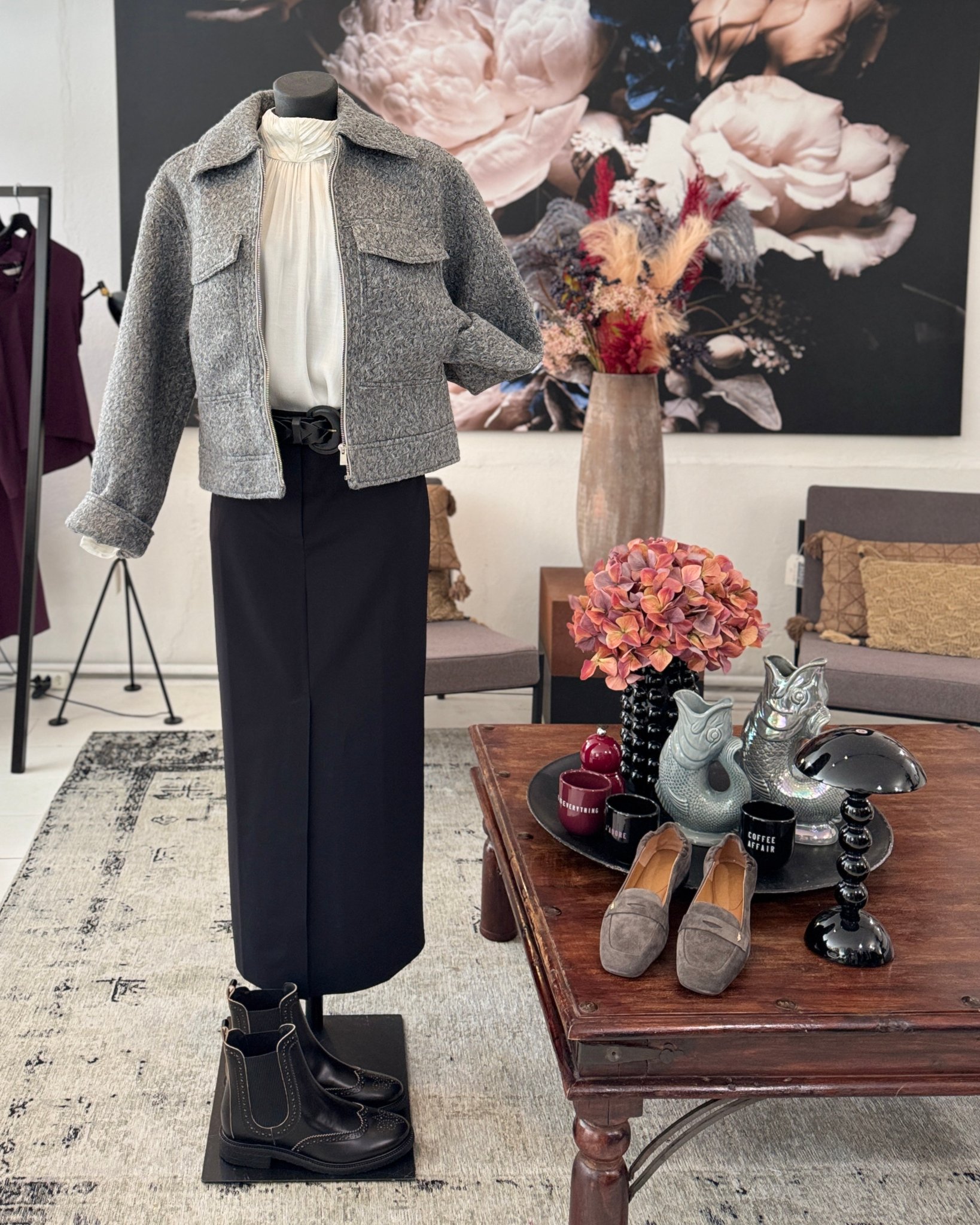 This long pencil skirt in a heavy travel jersey is a capsule wardrobe essential. Wear it with sneakers or Chelsea boots for a relaxed look or with heels for a more elegant one.